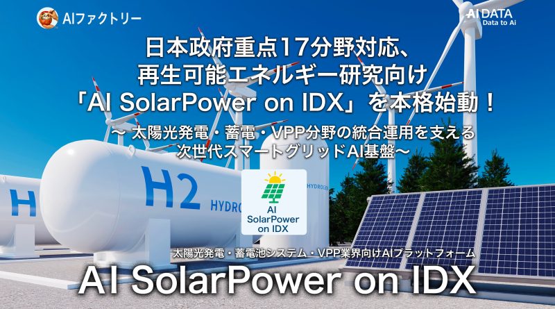 日本政府重点17分野対応、再生可能エネルギー研究向け「AI SolarPower on IDX」を始動!