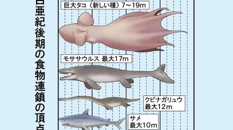 今から約1億~7200万年前の白亜紀後期の海では、全長が最大19mにもなる巨大タコが食物連鎖の頂点にいたことが、北海道大などの研究チームによるAIでの解析で …